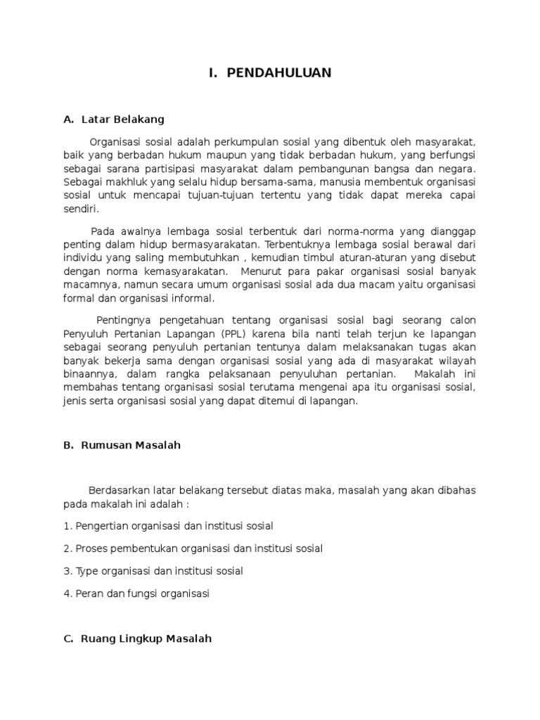 07.34 hazmy fauzi isd dan ibd 1 comment edit. Penulis menyadari bahwa makalah ini terdapat kekurangan. Manusia pada umumnya tidak bisa hidup tanpa orang lain, maka manusia harus memerlukan sebuah sosialisasi. Makalah sistem organisasi sosial dan sistem kekerabatan bab i. Masalah sosial adalah suatu kondisi atau perkembangan yang terwujud dalam masyarakat.