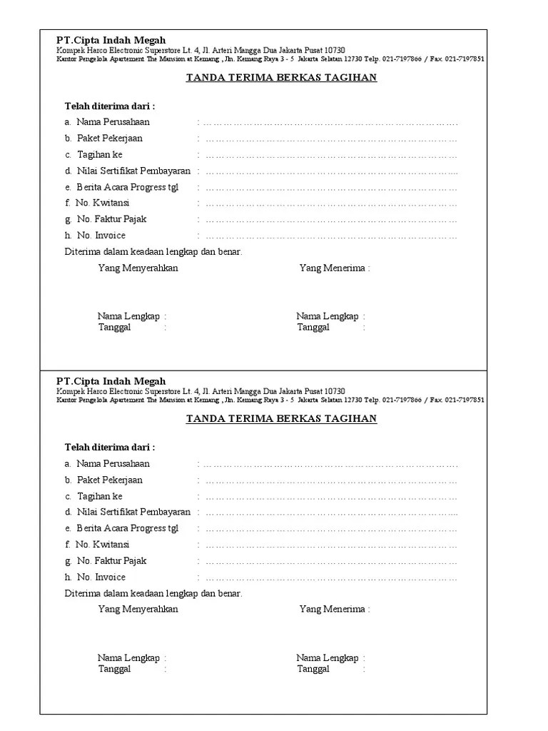 Contoh tanda terima dokumen perusahaan.